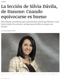 Cometer errores, aprender de ellos y hablarlos no es una estrategia tan común en México, pero ha marcado el liderazgo de Silvia Dávila, presidenta para Latinoamérica de Grupo Danone. La prueba y error, además, es lo que ha permitido que la división de la compañía que lidera la mexicana haya avanzado en materia de innovación.